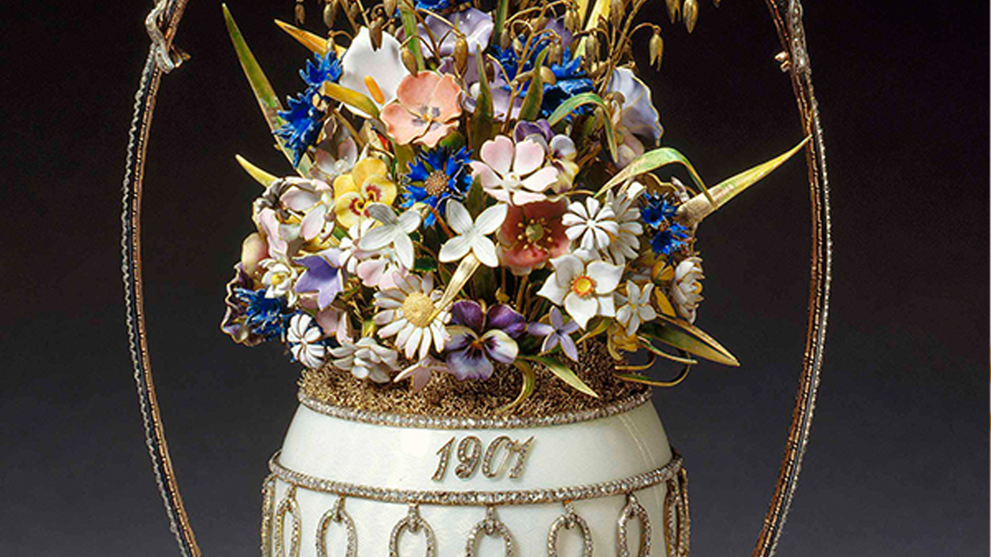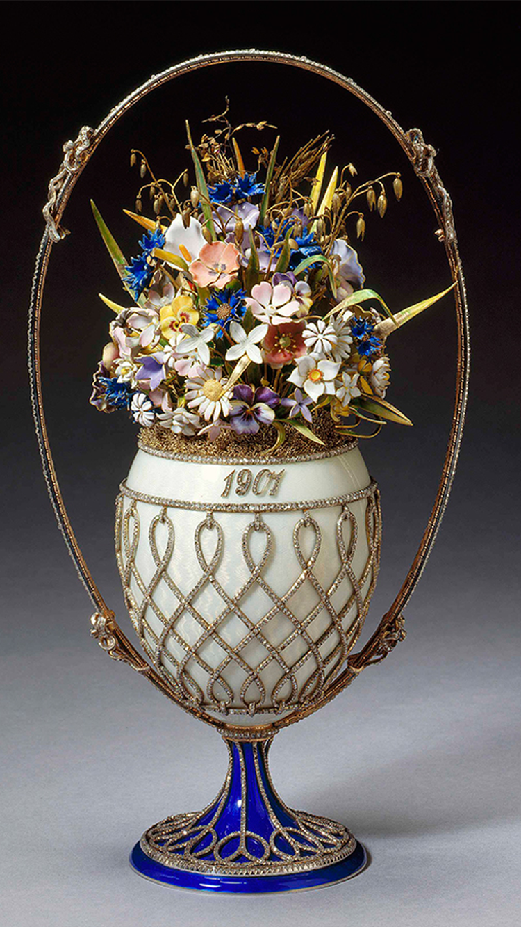 تم تصميم بيضة عيد الفصح الإمبراطوري هذه على شكل مزهرية تحتوي على مجموعة كبيرة من الزهور البرية المطلية بالذهب بمجموعة متنوعة من الألوان. تم تقديمها إلى الإمبراطورة ألكسندرا فيودوروفنا من قبل زوجها الإمبراطور نيكولاس الثاني، في أحد عيد الفصح عام 1901. حصلت الملكة ماري على البيضة في عام 1933. نظرًا لعدم وجود فاتورة في المجموعة الملكية، يُعتقد أنها ربما كانت هدية.