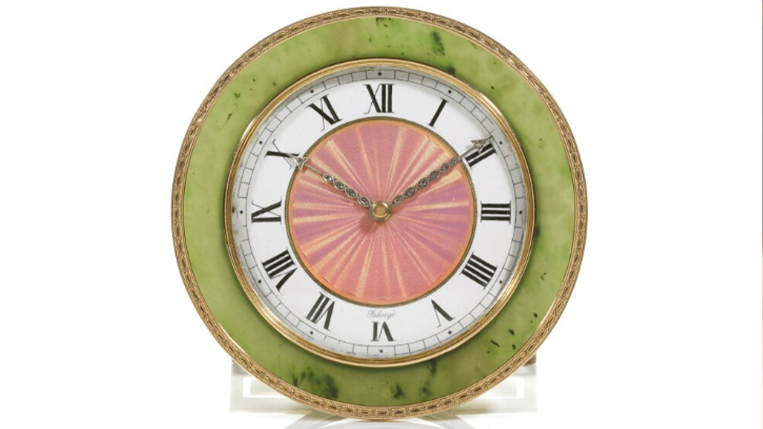 كما عُرضت في المزاد أيضًا ساعة مكتب من صنع Fabergé مرصعة بالجواهر من الذهب الوردي والفضة ، صنعها هنريك ويجستروم، صانع Fabergé ، خلال الفترة من 1908 إلى 1917. وقد تراوحت تقديرات سعر الساعة بين 30 ألفًا و50 ألف جنيه إسترليني، وبيعت مقابل 69850 جنيهًا إسترلينيًا.