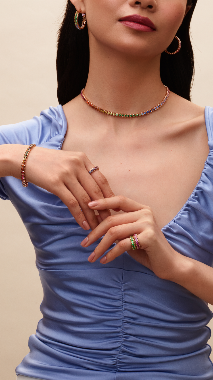احتفالاً بألوان الصيف المبهجة، يسعدنا أن نقدم مجموعة من الإبداعات الجديدة بألوان قوس قزح إلى مجموعة Colours of Love Cosmic Curve الشهيرة. تمثل مجموعة Cosmic Curve رابطة أبدية بين العائلة والأصدقاء والشركاء.