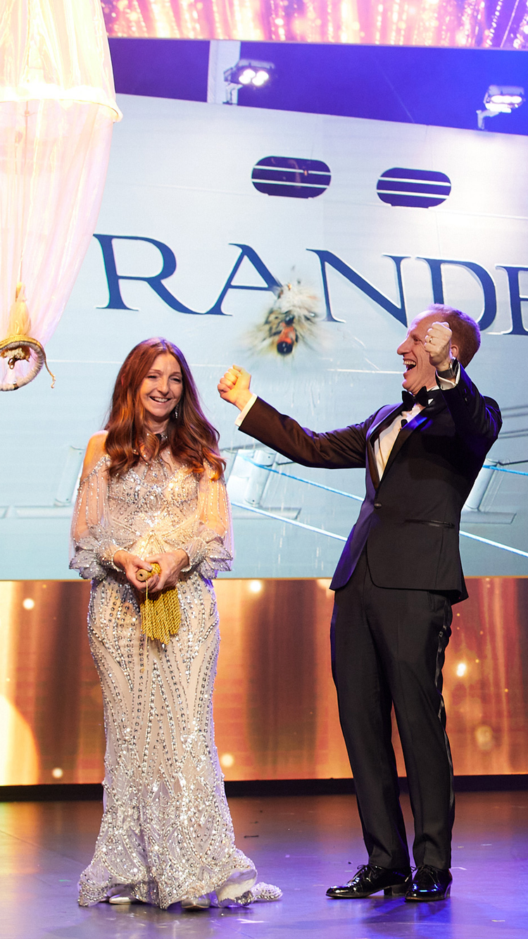 Sarah Fabergé, Miembro Fundador de nuestro Heritage Council y bisnieta de Peter Carl Fabergé, fue nombrada por el Regente como Madrina de Seven Seas Grandeur™, y presentó el huevo ‘Journey in Jewels’ en la ceremonia de bautizo del barco en Miami, Florida, el 10 de diciembre de 2023.