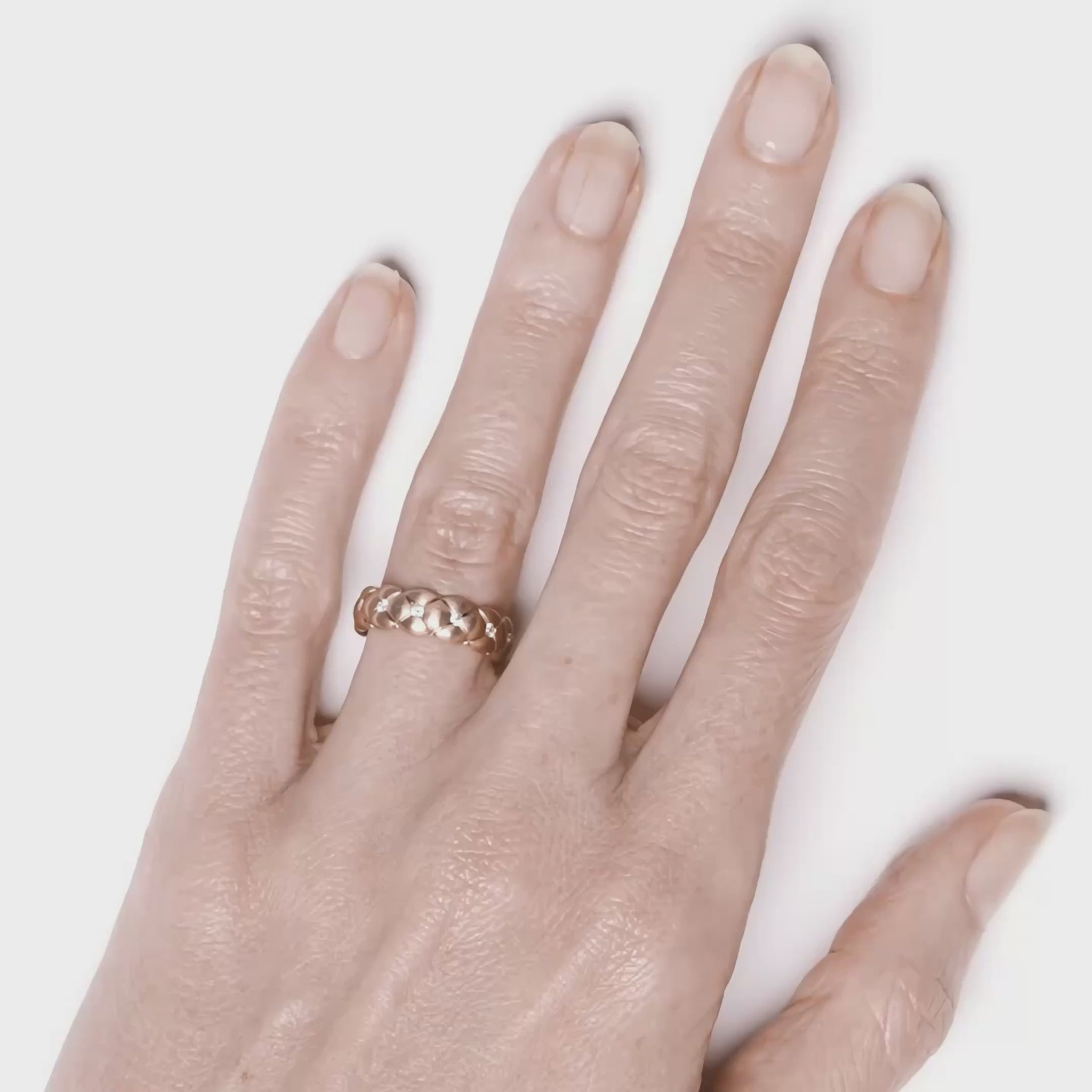 L'anello Treillage in oro rosa spazzolato e diamanti è caratterizzato da diamanti bianchi rotondi, incastonati in oro rosa spazzolato 18 carati.