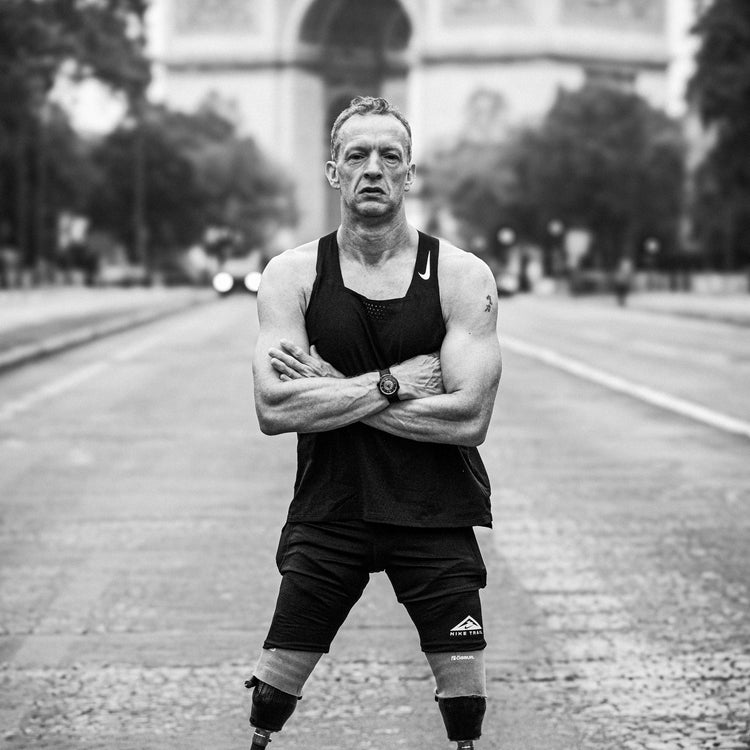 Британский спортсмен Ричард Уайтхед, кавалер ордена Британской империи, сфотографирован в Париже с нашими часами Visionnaire Chronograph White Gold .