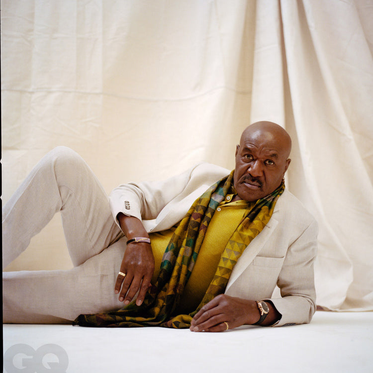 英裔美国演员德尔罗伊·林多 (Delroy Lindo) 在《GQ》杂志 5 月刊上佩戴了Fabergé Visionnaire DTZ Gallivanter 手表和Colours of Love黄金凹槽愈合戒指,镶嵌隐藏的绿宝石。